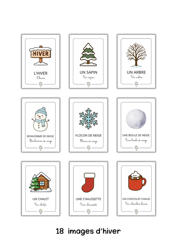 Offrez à votre enfant un joli voyage au cœur de l’hiver grâce à ce livret éducatif et ludique. Conçu spécialement pour les tout-petits, cet imagier rassemble 18 belles illustrations colorées représentant les éléments incontournables de la saison : arbre, sapin, flocon de neige, bonhomme de neige, boule de neige et bien d’autres encore.