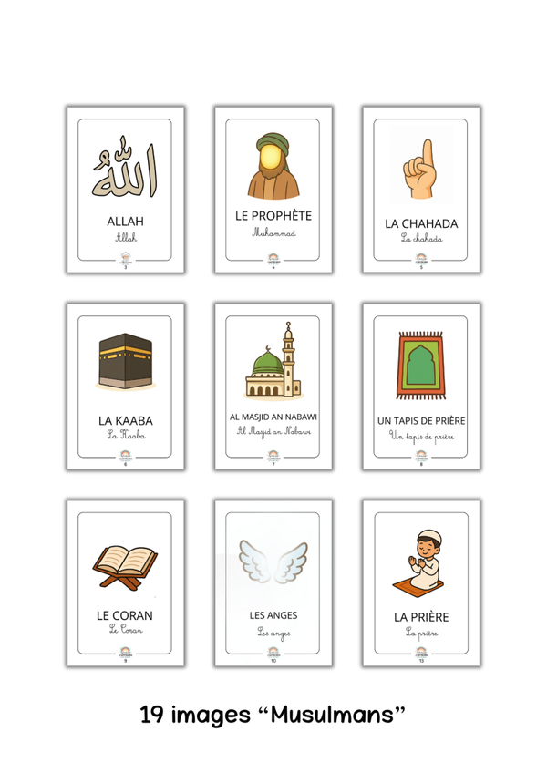 Conçu spécialement pour les tout-petits, il rassemble 19 belles illustrations colorées représentant des éléments essentiels du quotidien du petit musulman : la Kaaba, la mosquée, le Coran, la prière, l’aïd, le tapis de prière et bien d’autres encore.